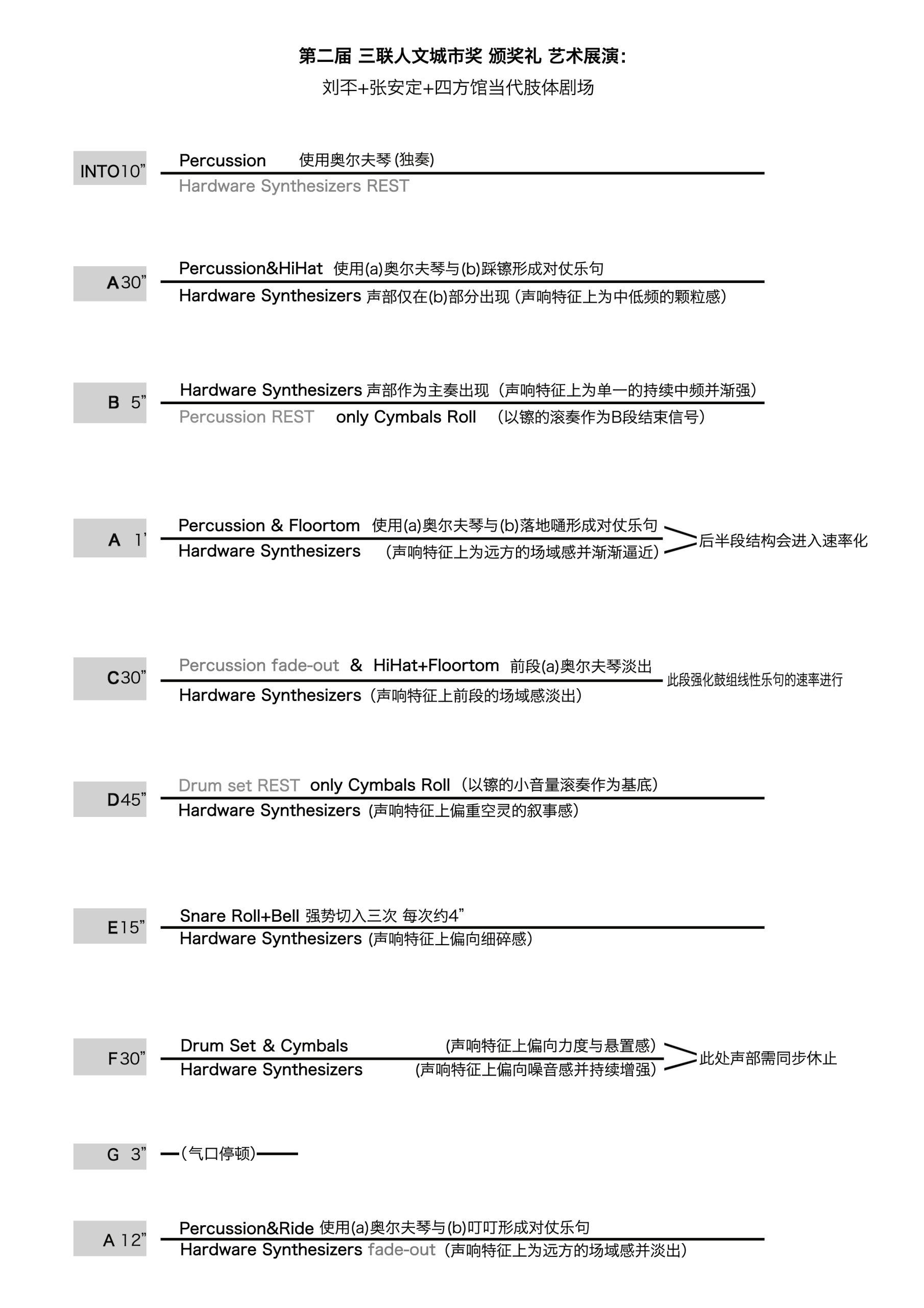 张安定的声音剧场探索,关注社交媒体等技术改变的声音文化,现场表演者与声音数据之间的叙事重构,以及表演中的人声和身体即兴。他称之为“声响想象-声响写作-声响剧场”的日常生活炼金术。
