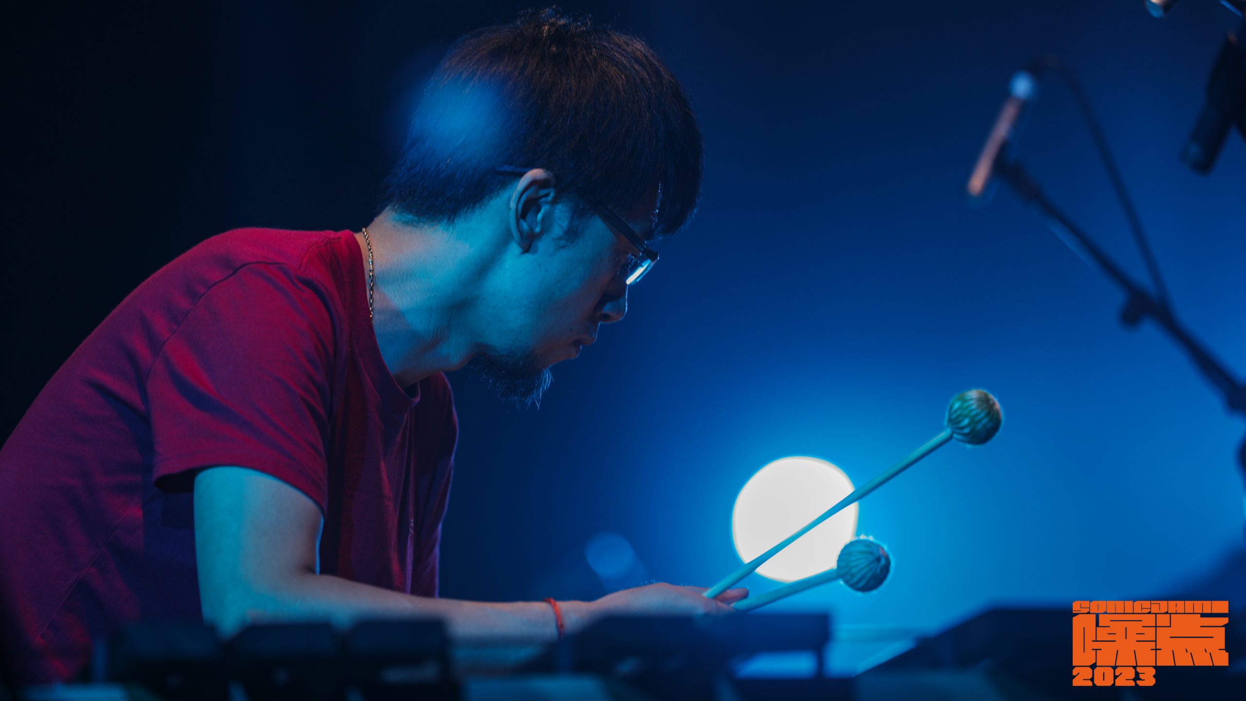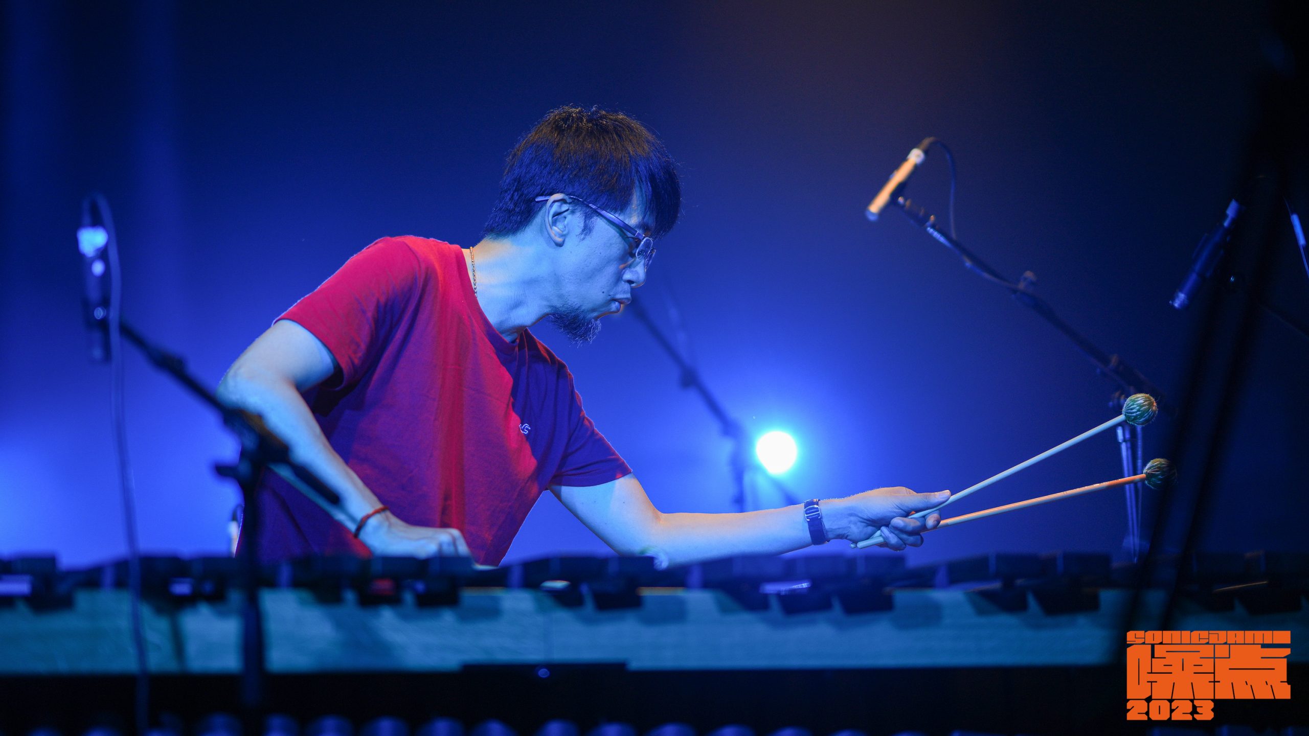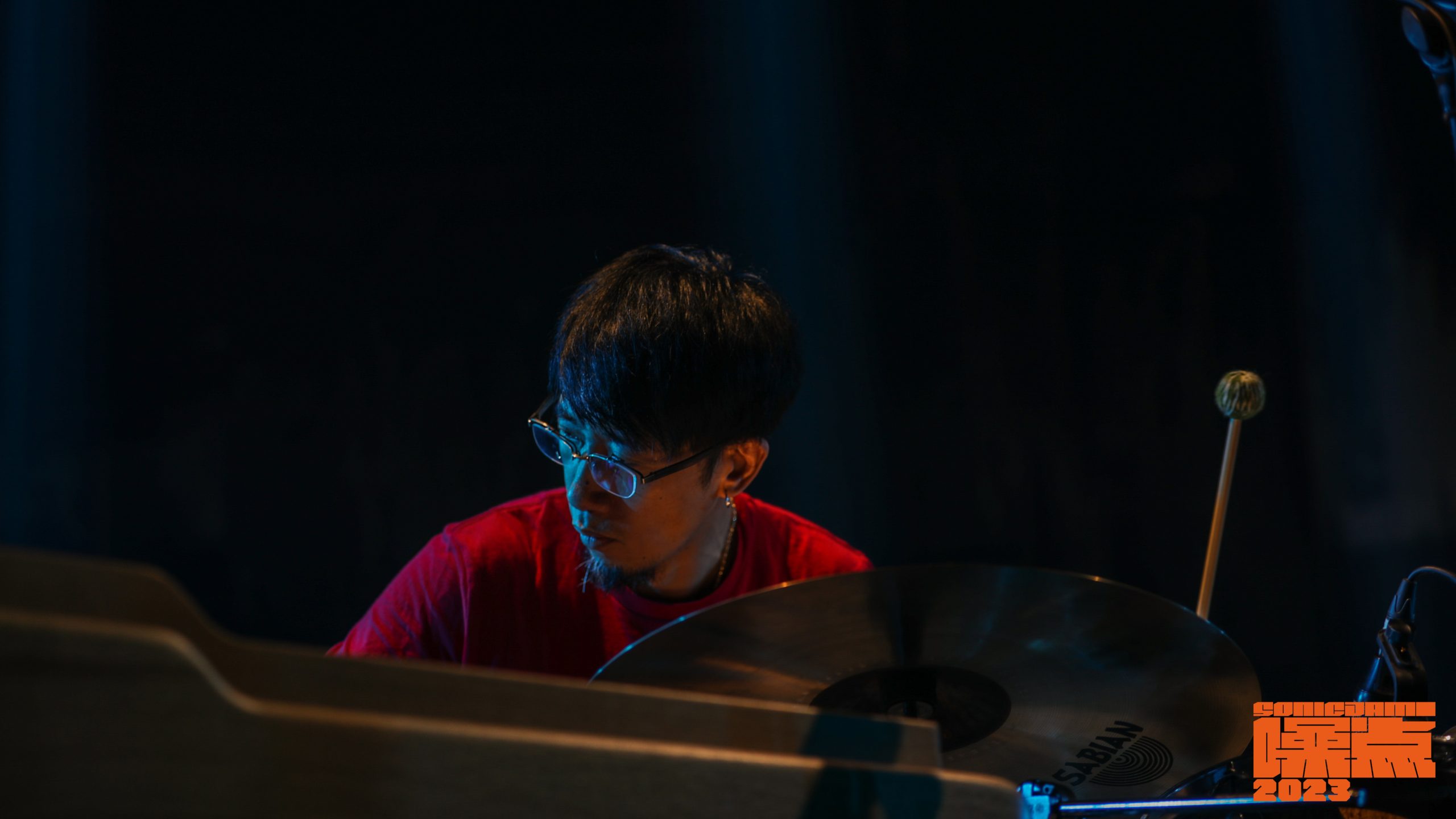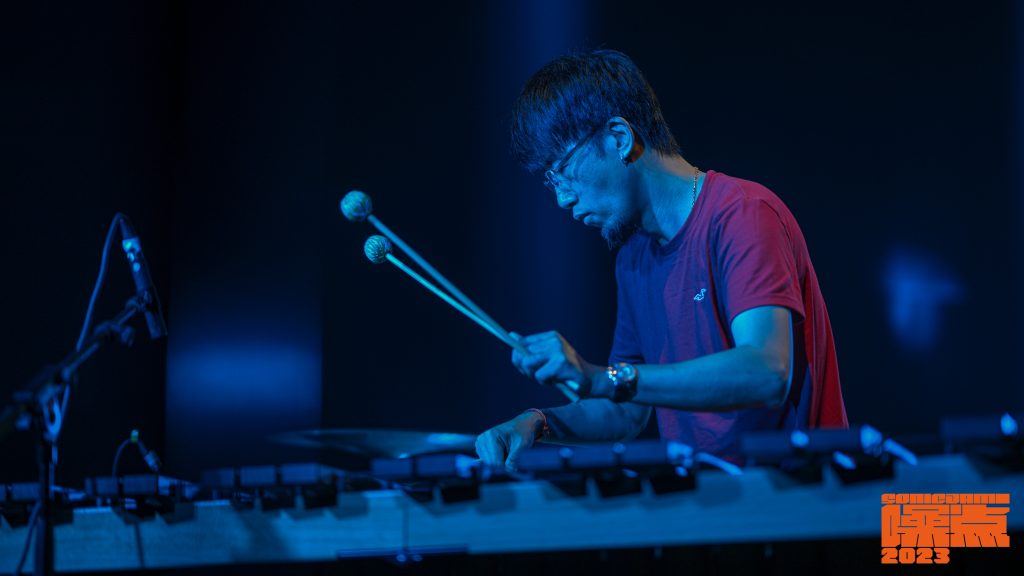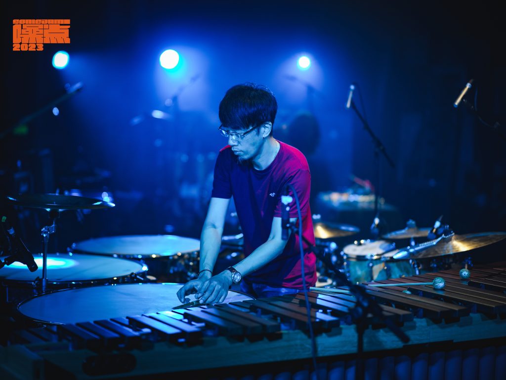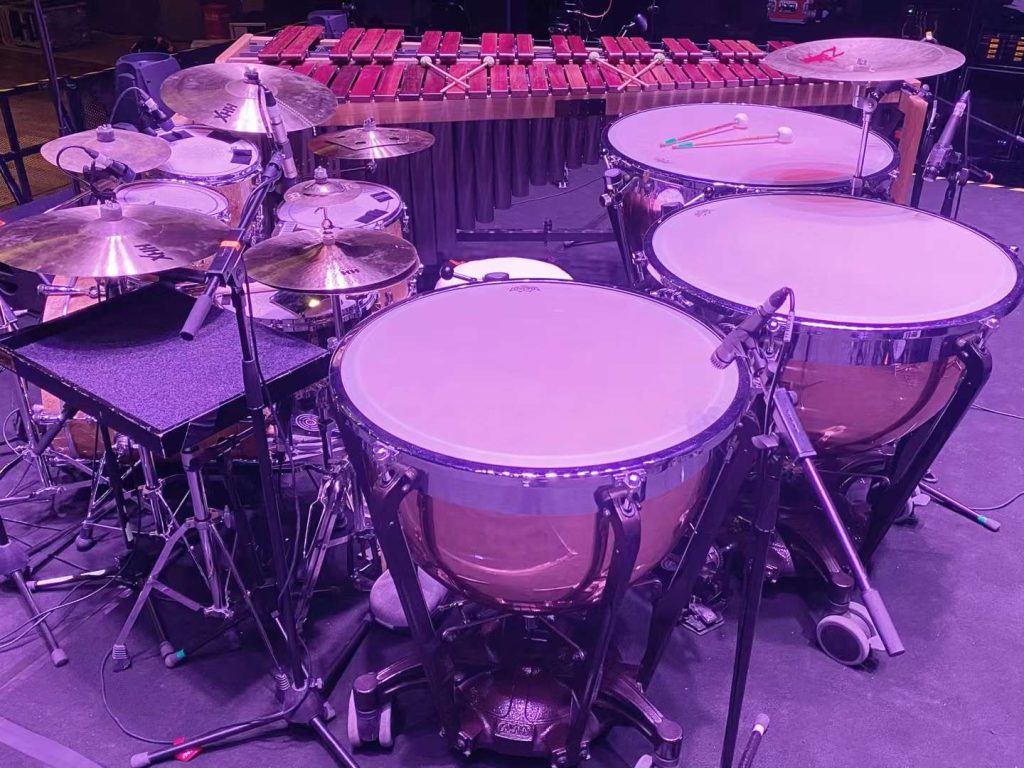 在第二届西安噪点音乐节,我使用了一个囊括鼓组、马林巴、定音鼓的打击集群。