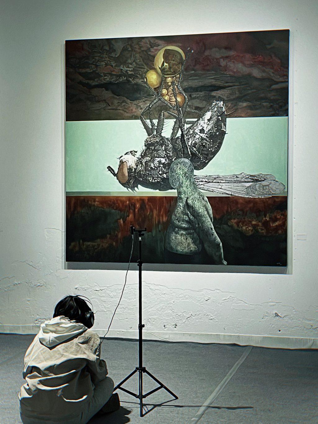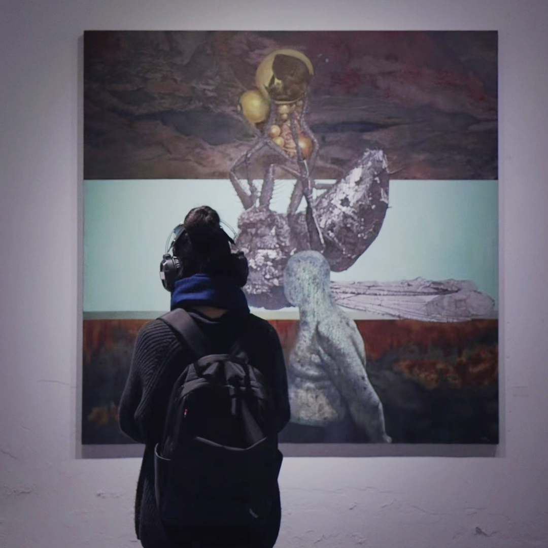 此次展览的另外一个亮点是回归本次展览【SEEING SOUNDS】的主题,本次参展的所有艺术家有一个共同的身份:摇滚音乐人 /声音艺术家。本次画展参展艺术家们专门为自己的画作挑选了他们自己制作的音乐,在整个观展过程中通过一个声音导向大大增加了观展体验,让声音通过画面被看见,让画面通过声音被听见!