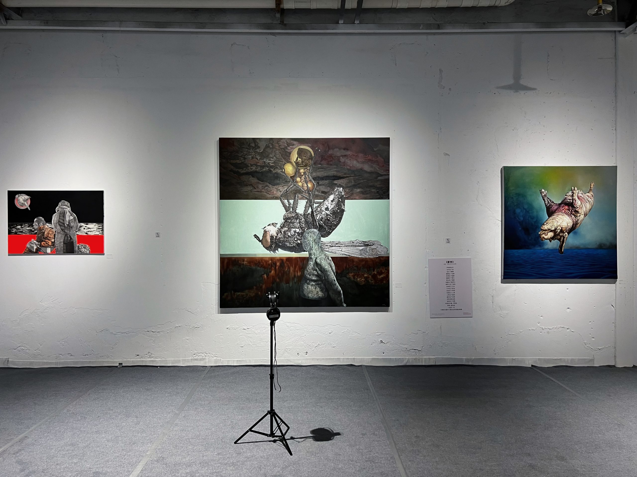 这次受邀的7位艺术家都是我特别欣赏的音乐人,他们在音乐上取得的成就是大家有目共睹的,在当代艺术上的造诣也是让很多业界人士瞠目结舌。左小祖咒凭借自己作品特有的属性曾经两次参加过威尼斯国际双年展,这个双年展是很多艺术家梦想能够参与的国际重要展;中国第一代摇滚人唐朝乐队丁武少年学画,专业美院出身,音乐对他的绘画辅助让其作品里透露出来的古典浪漫主义又夹杂着先锋迷幻的意识流;苏阳的重彩油画和他的音乐异曲同工淋漓尽致的表现了地方区域的人文;张浅潜一直是公认的才女,绘画里灵光频现如同她的那条清澈潺潺的“倒淌河”;王晓芳作为国内第一支女子乐队眼镜蛇乐队的鼓手,也是中国原创“实验”扬琴第一人,这么多年,她在鼓棒和画笔之间一直在声音和画面里来回切换;作为一个从事视觉艺术的声音艺术家,武权还跨界了电影领域,这次他的参展作品从动机到成稿历经了10年的时间,这个10年的时间轴也呈现了他电影般的故事性;刘㔻,优秀的声音艺术家,曾就读于中央美院,因为长期从事节奏和旋律的研究他打破了绘画上科班的循规蹈矩,致使他的绘画灵感在出色的基本功技法下像是一股跃跃欲试按也按不住的火山泉眼。