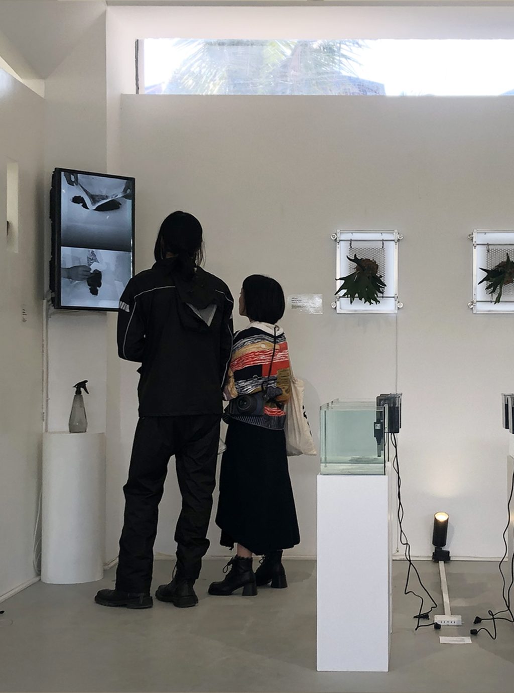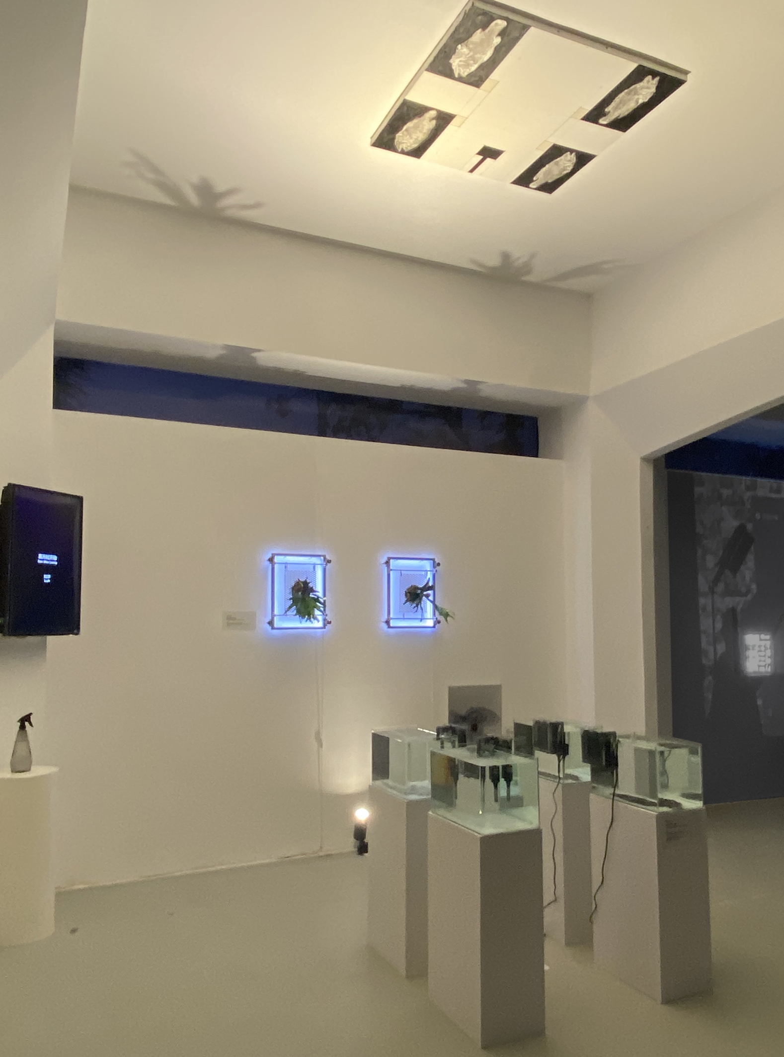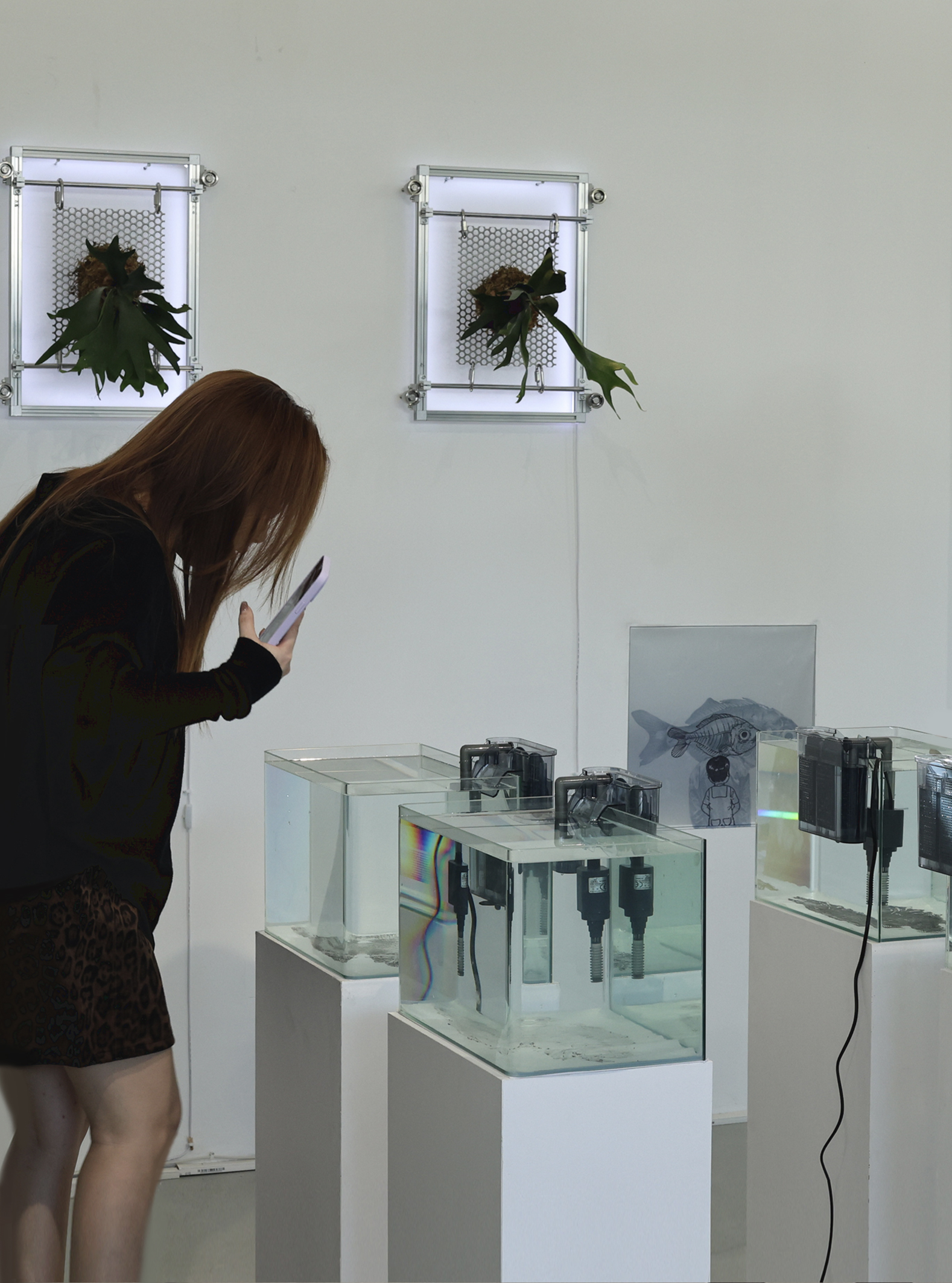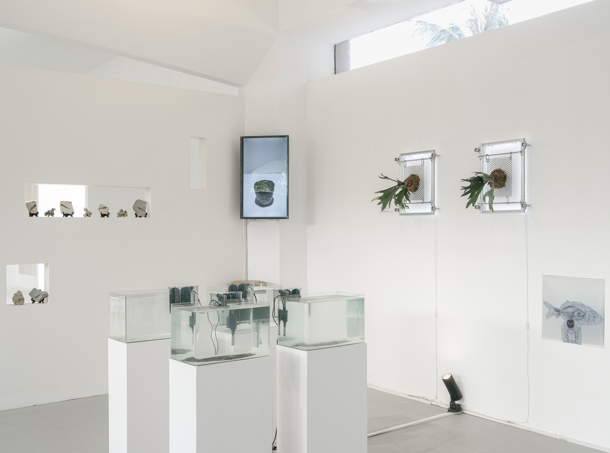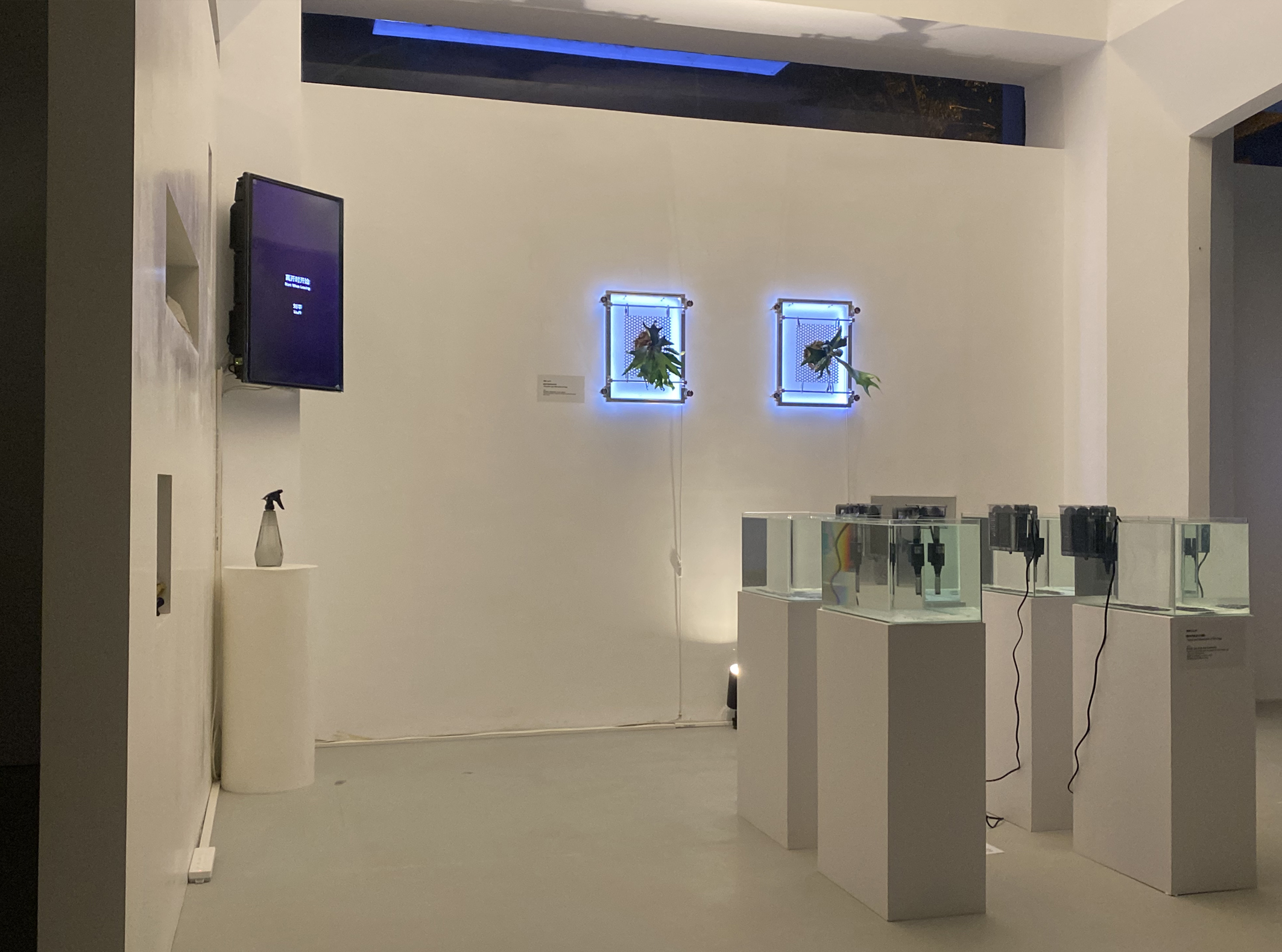媒介:铝金属框架、活体蕨类植物、LED 灯带、鱼线