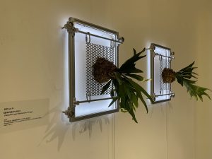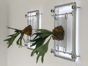 Media: Titanium metal frame, living ferns, LED lights, fishing line