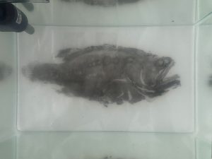 The creation of this work began when the artist was strolling in a seafood market near their residence and accidentally caught a dying grouper,