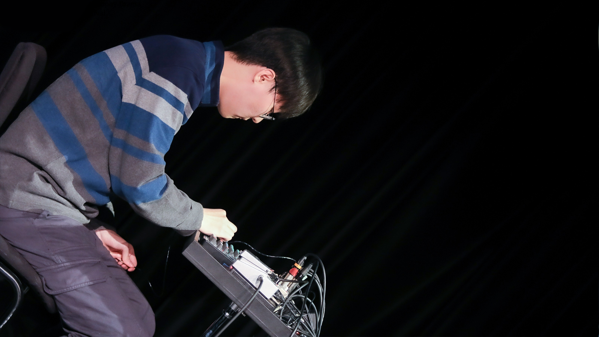 因此,在这次“哲学-戏剧”学术域中置入一些天线、食蚁兽、光、赤足、乐器与非乐器,身体与机器。这些肉体与电子元件以不同的交往方式呈现出艺术与技术的生成序列。