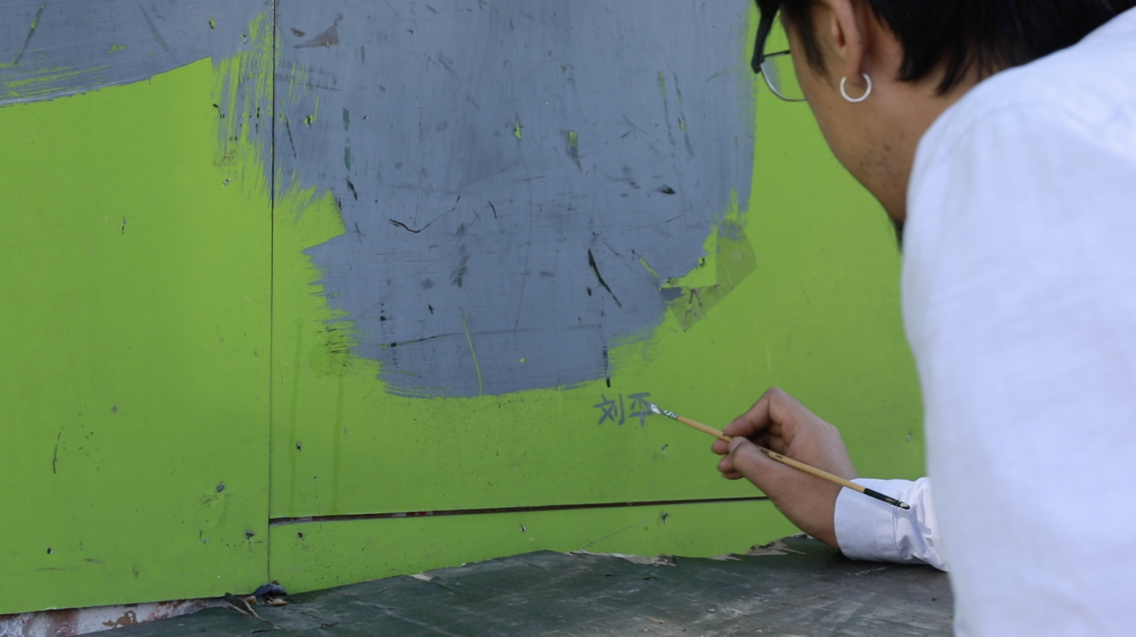 该系列作品以实地所触及的城市空间为角度,对人们日常生活行为在公共场所内留下的各类涂抹痕迹进行“署名”,并再以摄影的方式认领出所圈定的范围作为自身的绘画作品。