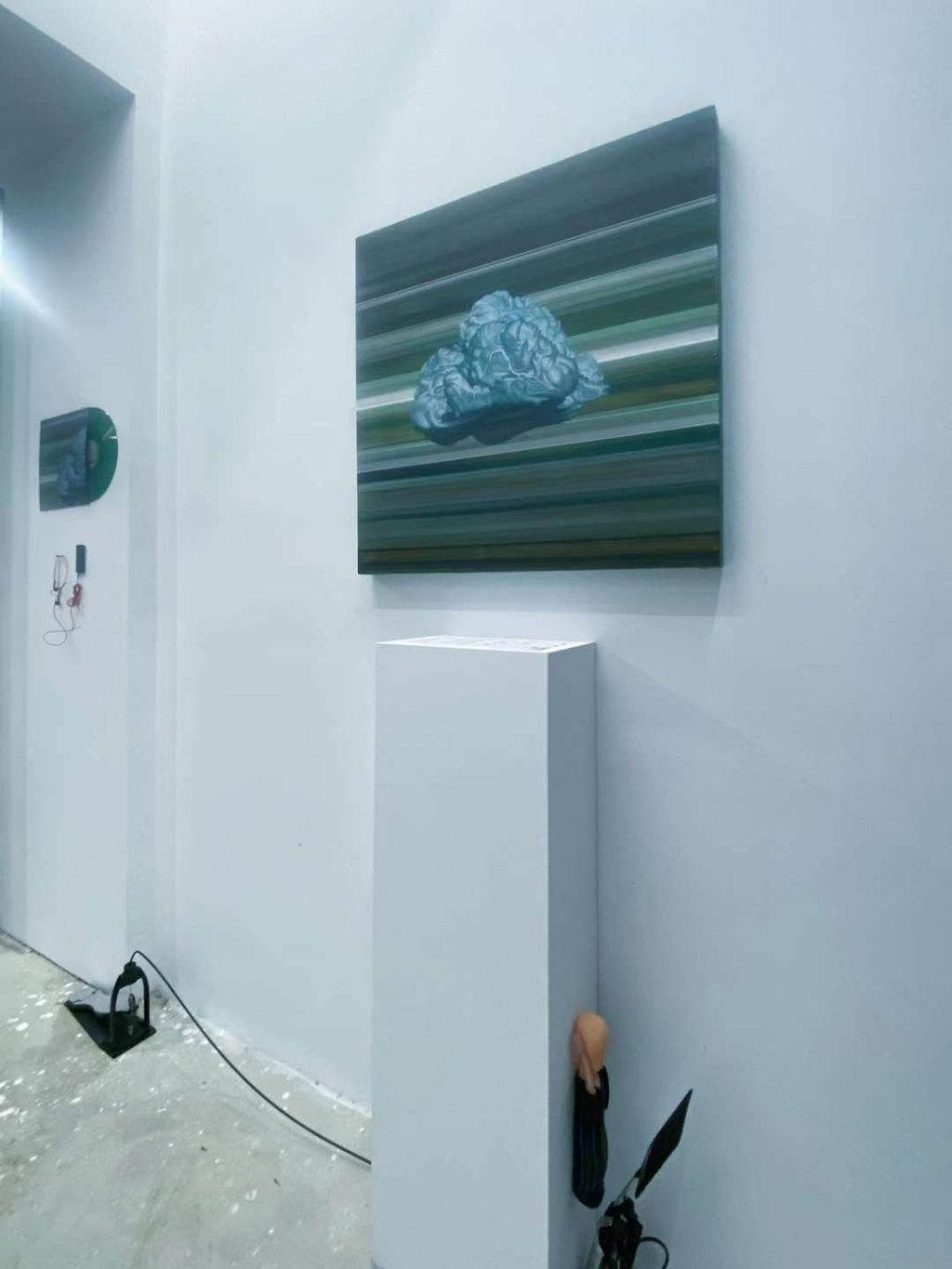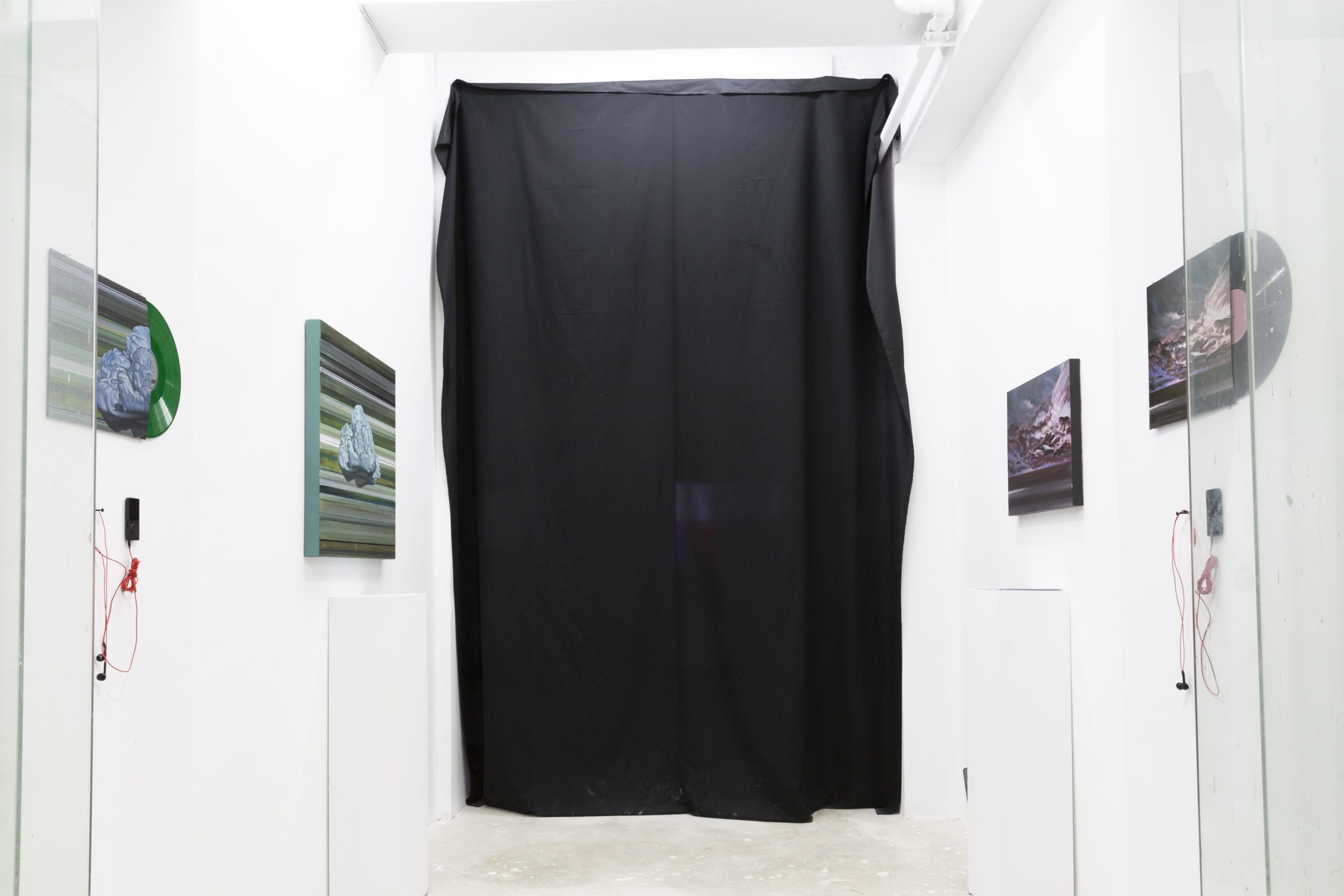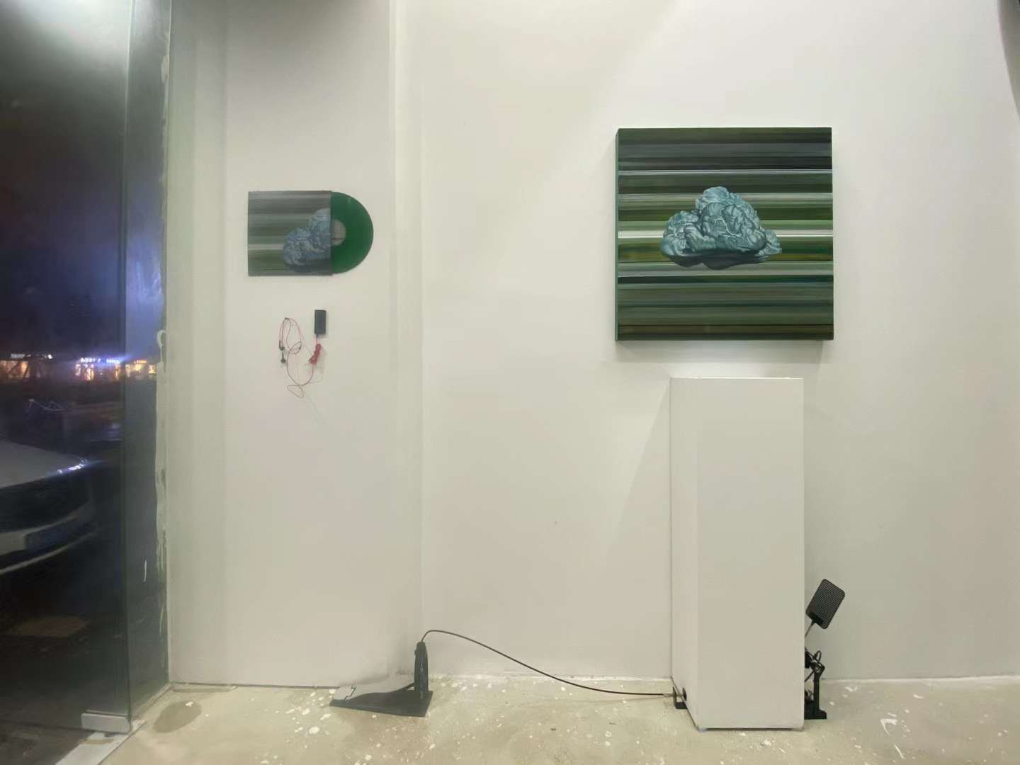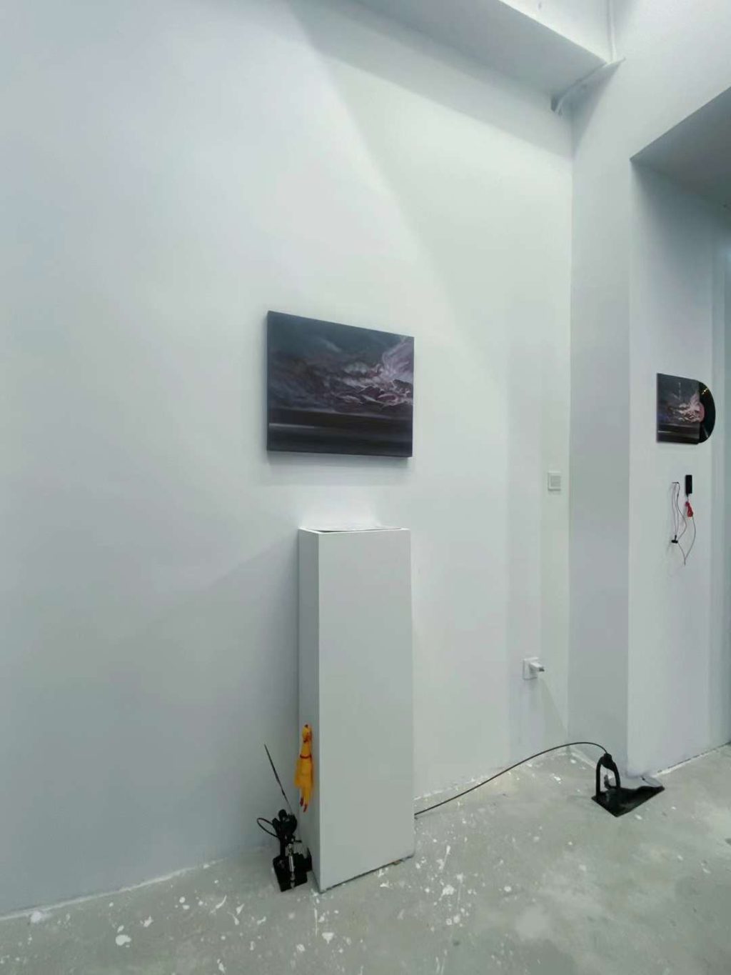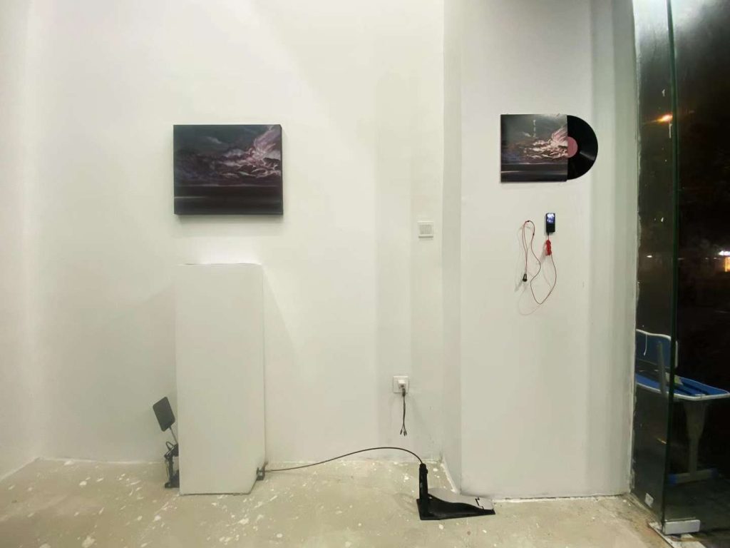 最外部的基调是属于“物“的,是确立的”交易“。是唱片与画廊生产力与产品线的明码标价,也是对于聆听与观看的仪式效仿。是我与环境的关系,是我作为这一生产链条其中一员的角色身份。对于展台的戏谑,则有着将不和谐的局部异响袒露于人前的企图。而蝇拍所设立的触击是对于中部空间的诡计。