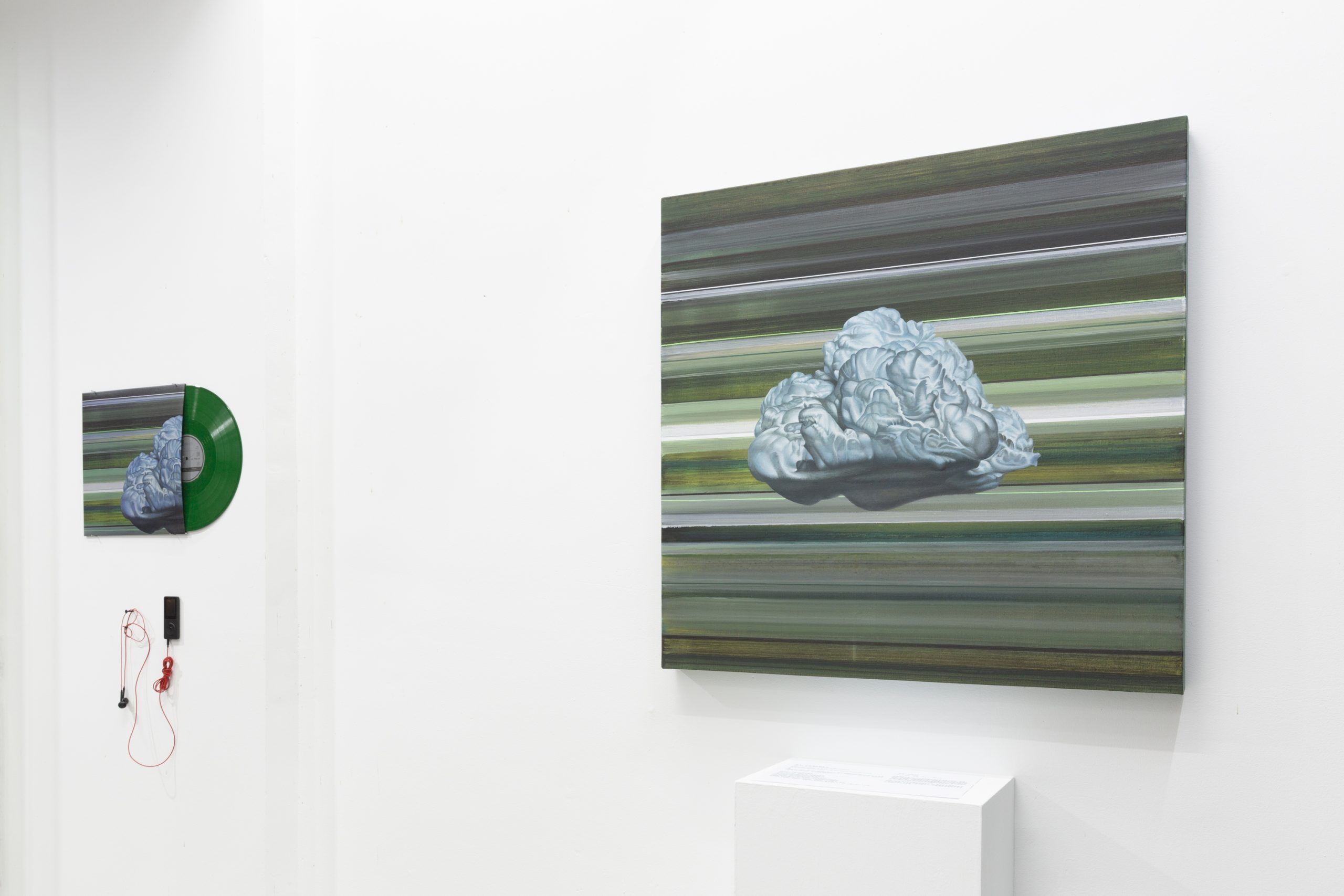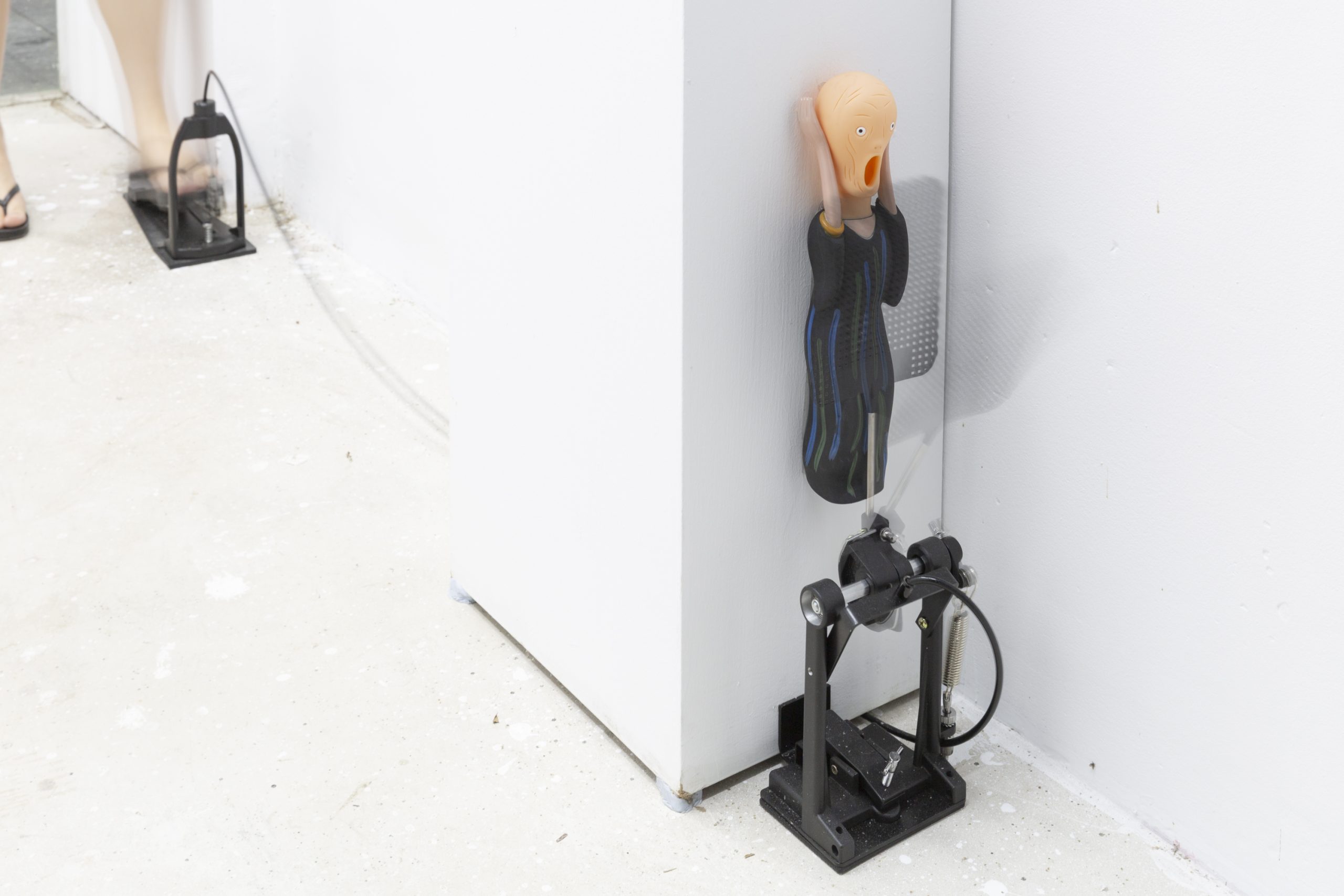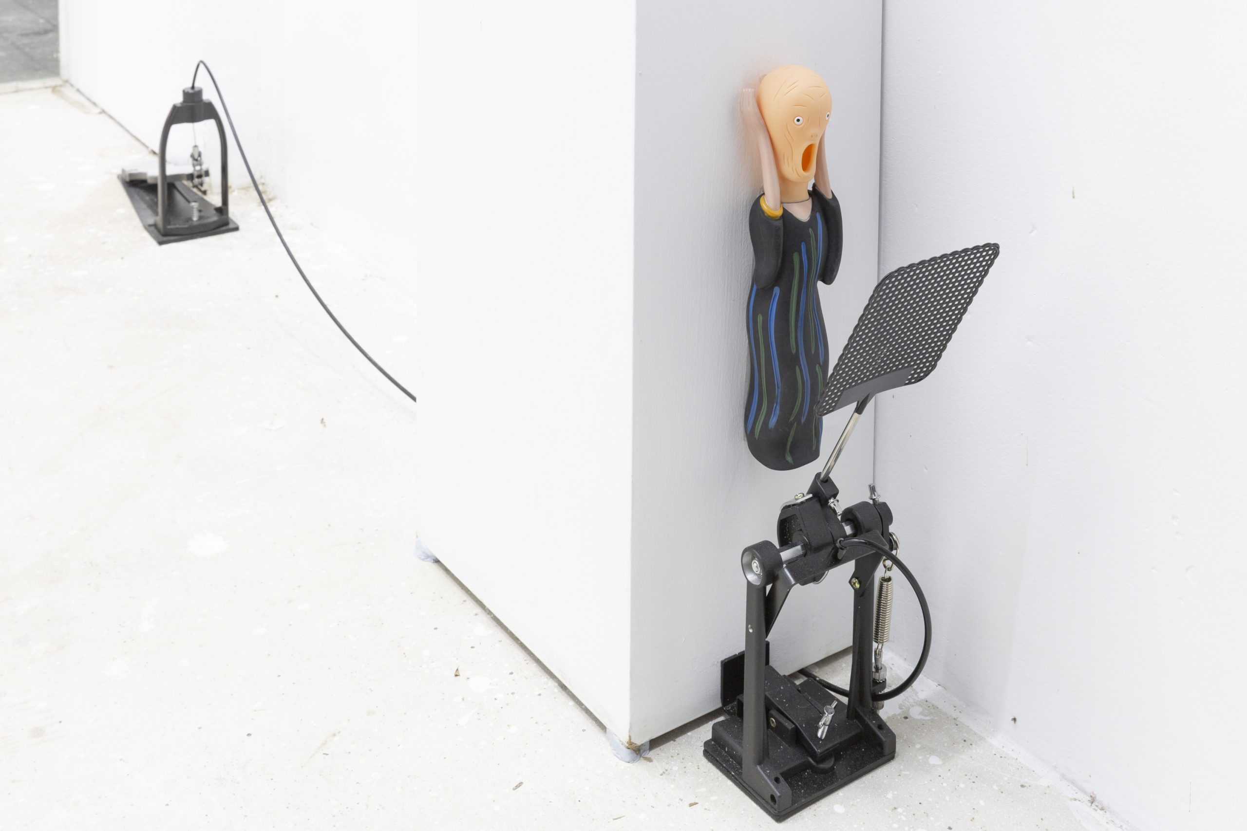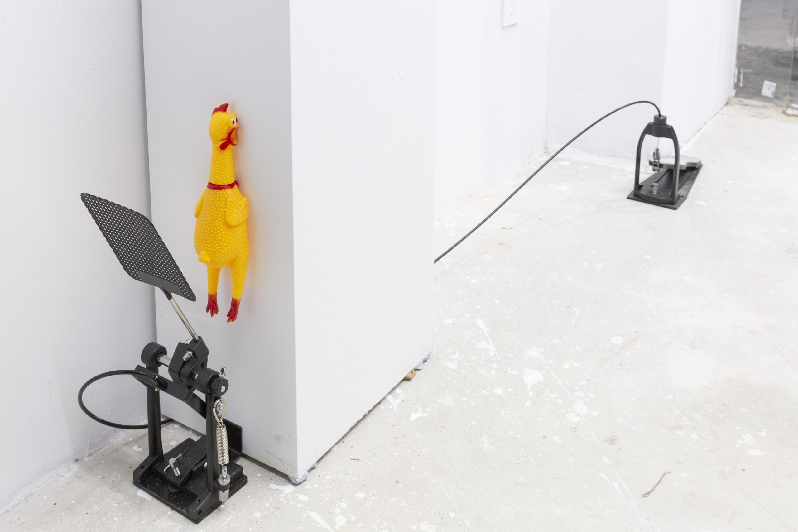 最外部的基调是属于“物“的,是确立的”交易“。是唱片与画廊生产力与产品线的明码标价,也是对于聆听与观看的仪式效仿。是我与环境的关系,是我作为这一生产链条其中一员的角色身份。对于展台的戏谑,则有着将不和谐的局部异响袒露于人前的企图。而蝇拍所设立的触击是对于中部空间的诡计。